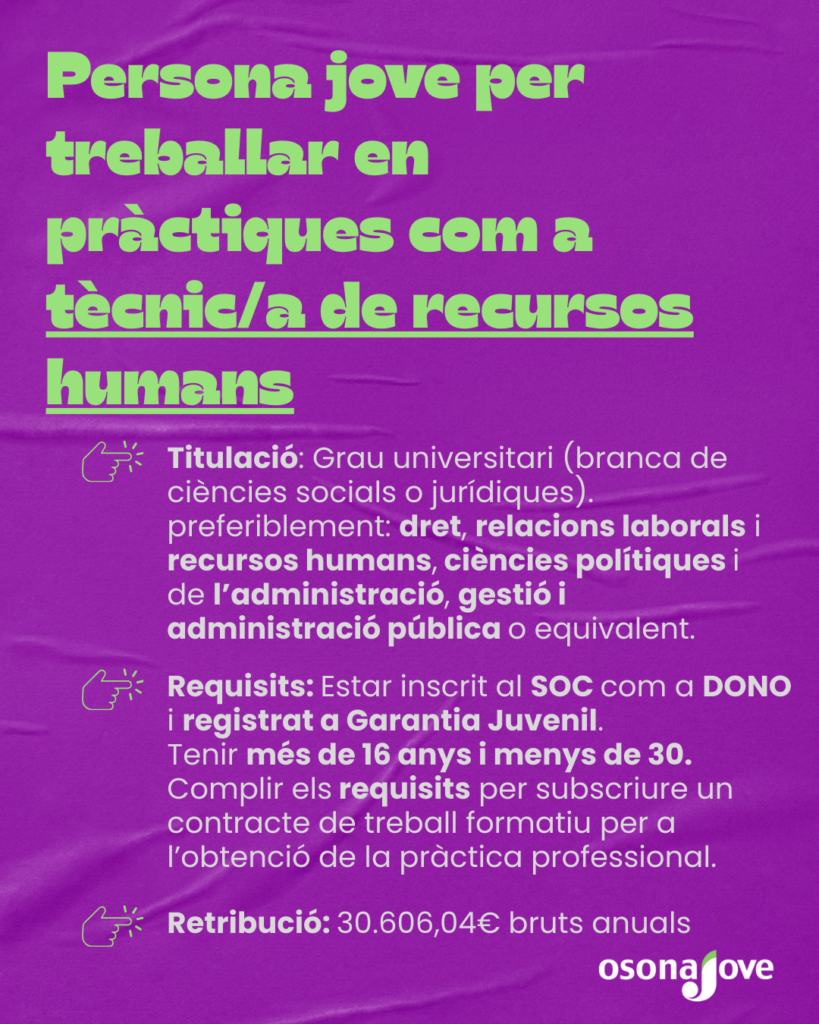 👉 Si t’interessa (o coneixes algú que hi pugui encaixar), no deixis passar l’oportunitat!
